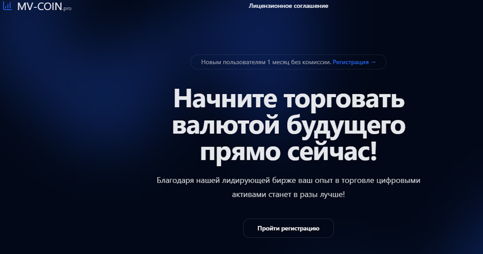 Информации о Mv coin pro немного. Официальный сайт проекта особой информативностью не отличается. На главной странице уведомление, что перед нами одна из передовых платформ для торговли активами. Больше данных нет.