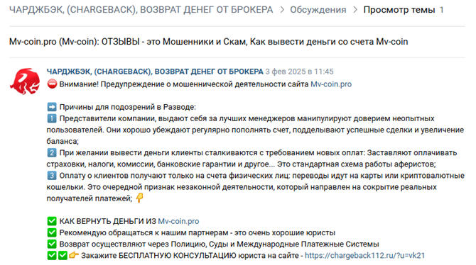 Мы не рекомендуем «Мв коин про» для сотрудничества. У компании нет лицензии, условия инвестирования скрыты, правила пользовательского соглашения не в пользу инвесторов, вердикты специалистов по поводу честности проекта неутешительные.