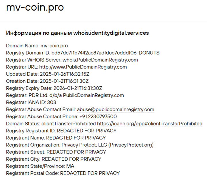 Проверка доменного имени показала, что сайт существует меньше месяца. Проект был запущен в январе 2025 года.