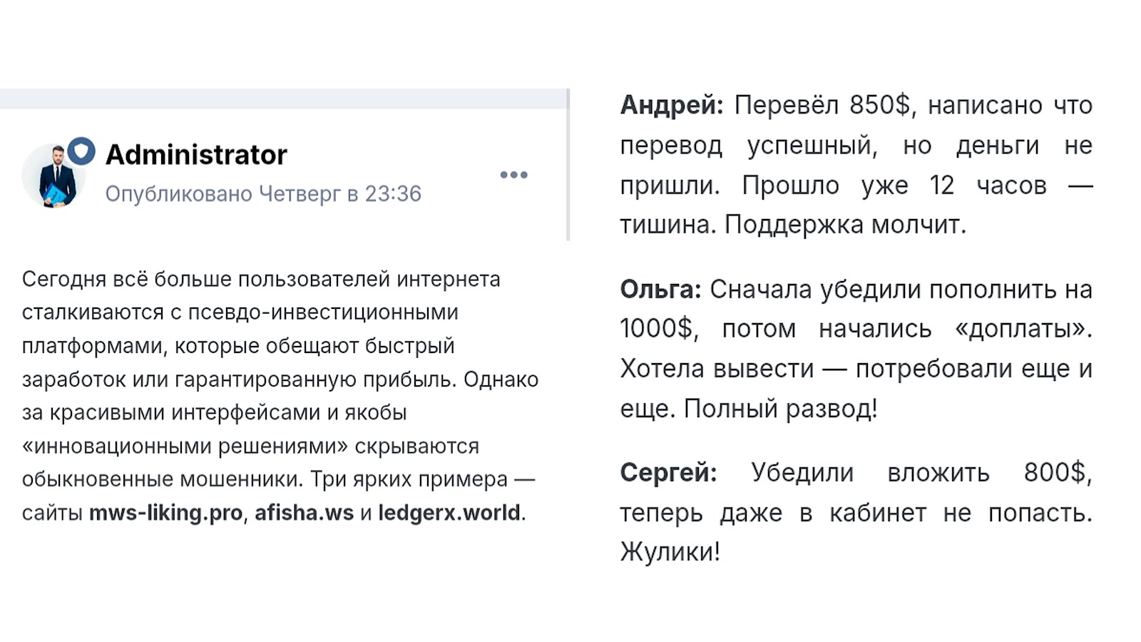 Как пишут пользователи, во время пополнения балансов средства с карт списываются, но не приходят на счет. При выводе денег требуют разные доплаты или же доступ к аккаунтам попросту блокируют.