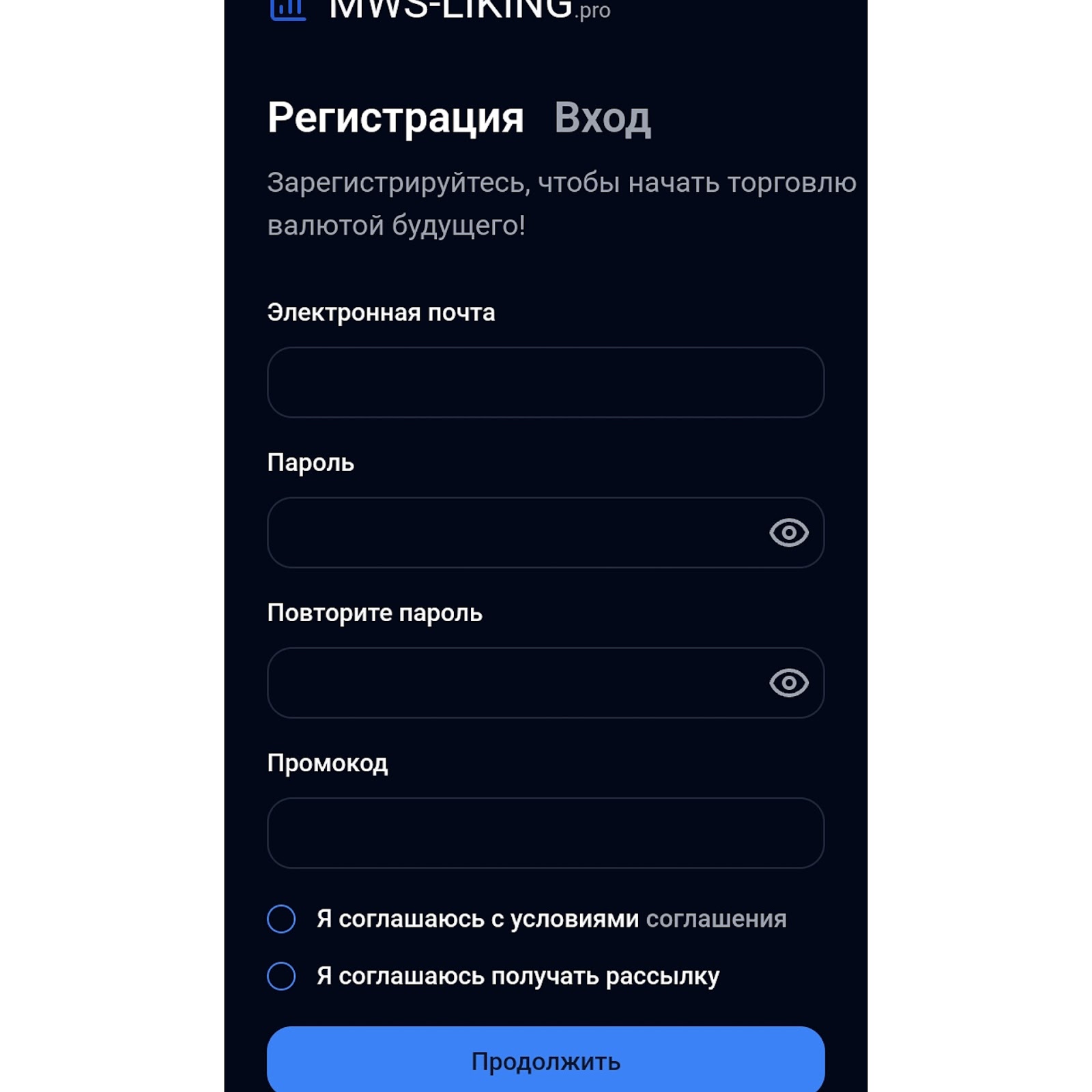 - согласиться с условиями работы + рассылками.