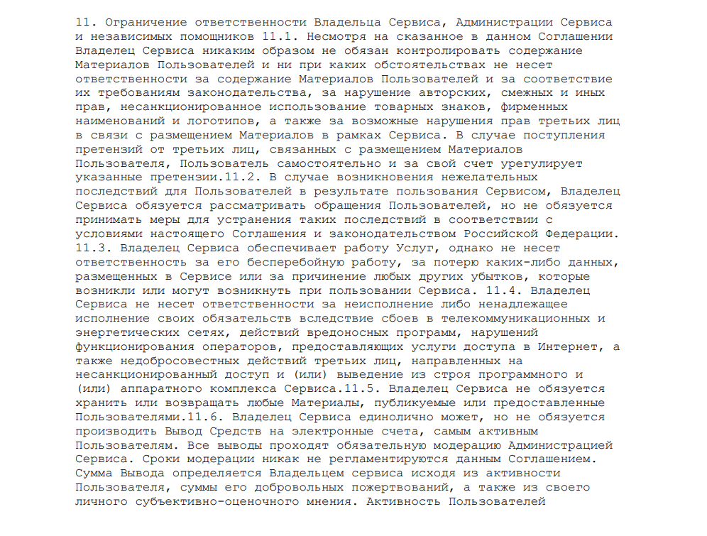 На сайте можно изучить соглашение, из которого, создатели не гарантируют постоянный доступ к сайту.