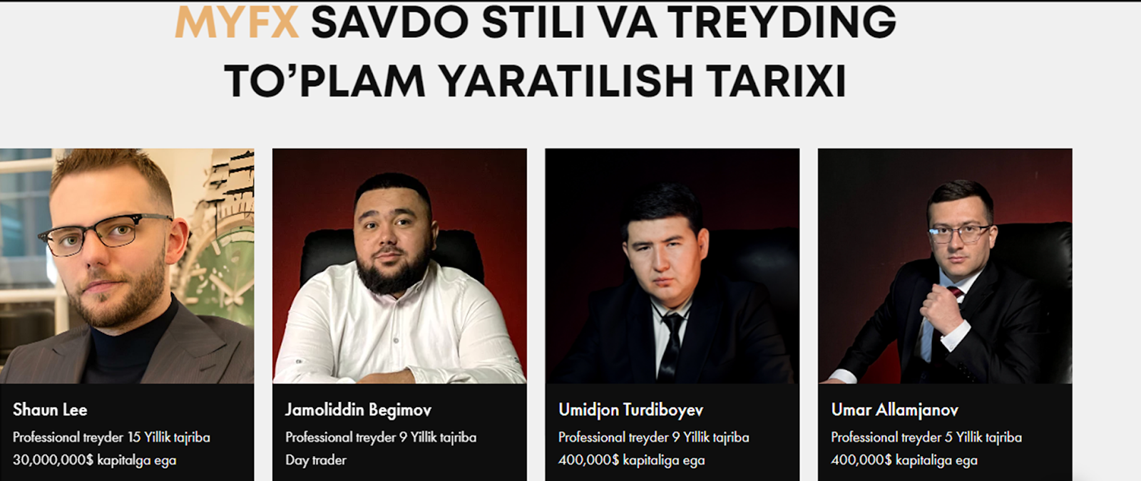 Суть Myfxbro trader в том, чтобы научить всех желающих торговать криптовалютой. Создали онлайн-школу четыре гражданина Узбекистана — Jamoliddin Begimov, Shaun Lee, Umar Allamjanov и Umitjon Turdiboyev. Но кем именно являются эти мужчины — неизвестно. В сети никаких данных о них нет.