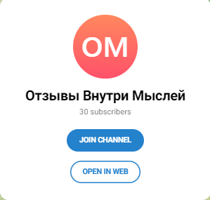 Для обсуждения условий сотрудничества создан отдельный канал «Отзывы внутри Мыслей». Его аудитория значительно меньше — около 30 подписчиков. Это рабочее пространство для взаимодействия с участниками проекта.