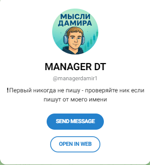 Для получения деталей необходимо написать менеджеру в Telegram. Контакт для связи — MANAGER DT @managerdamir1 . Обсуждение условий происходит индивидуально с каждым потенциальным участником.