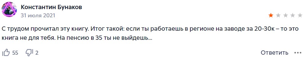 Читал его книгу, не впечатлен. Никаких полезных советов про то, как быть простому человеку, так нет. Книга написана для тех, у кого и так хороший заработок. Смысла в ней не вижу никакого.