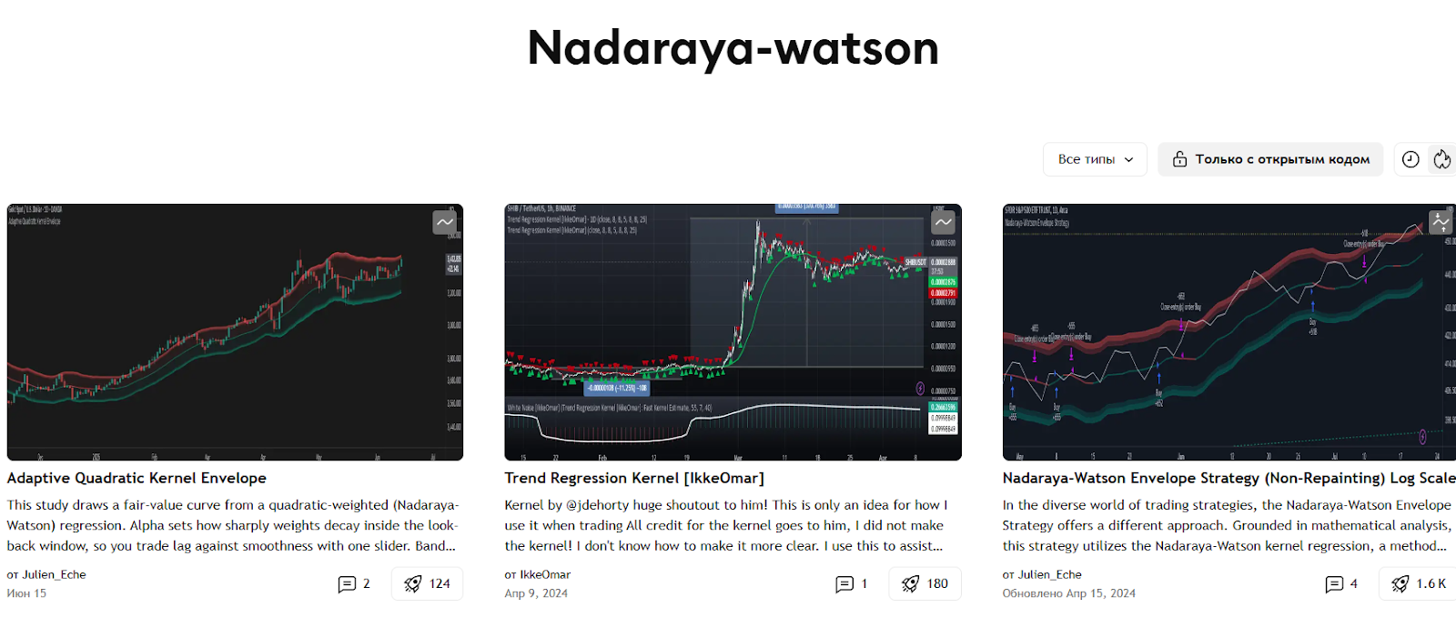 Со статьями и примерами использования инструмента можно ознакомиться на различных трейдинг-порталах и в блогах, однако почти все материалы на английском языке, как и инструкция на сайте LUX Algo, откуда индикатор загружается.Отзывы трейдеров о Nadaraya Watson Envelope