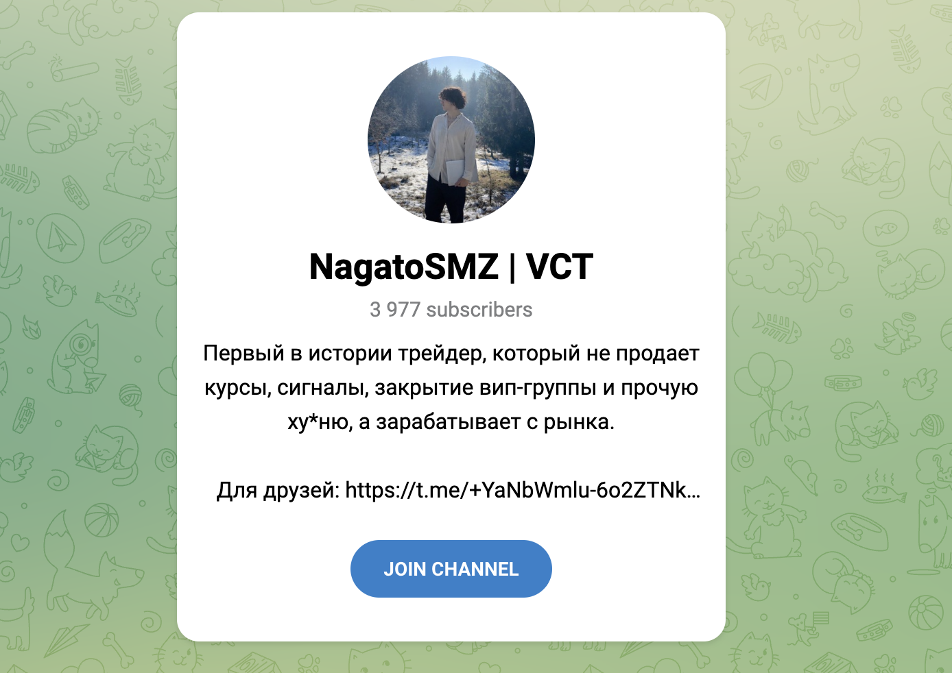 NagatoSMZ Трейдинг — телеграмм канал, связанный с торговлей криптой и проп-трейдингом. Автор ведет канал, где делится своими сделками, публикует мысли по рынку и иногда показывает результаты торговли. Он позиционирует себя как практикующего трейдера, который торгует на проп-аккаунтах и зарабатывает на рынке. Так ли это на самом деле — разберем в обзоре.