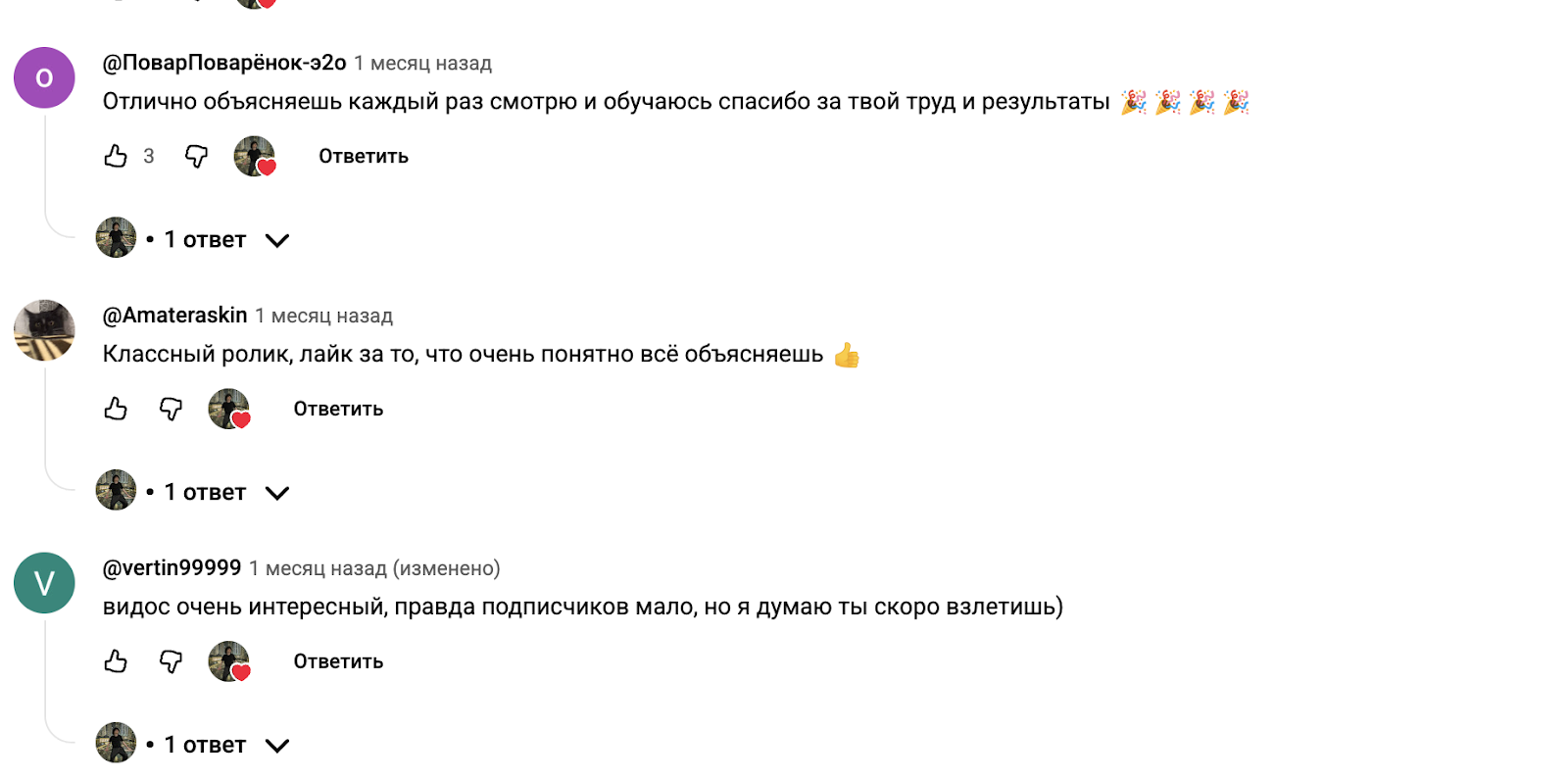 Под роликами автора на Ютуб, подписчики оставляют хвалебные комментарии о методах работы парня. Внутри телеграм канала сообщений нет, что удивительно. Также и с независимыми отзывам на сторонних площадках.