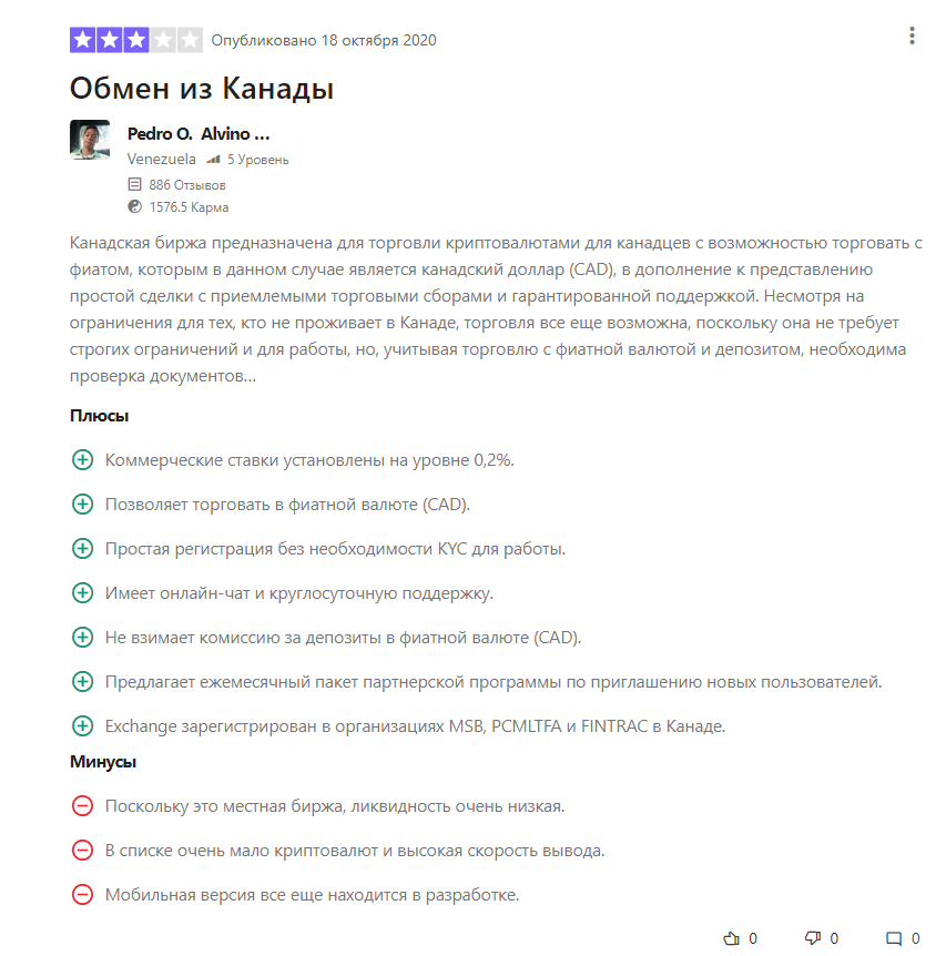 По итогам проведенного обзора, мы не можем сказать, что данная платформа создана для мошенничества. Это обычная локальная криптобиржа, которая ориентирована на канадский рынок. Впрочем, взаимодействие с ней будет неудобным по целому ряду причин: