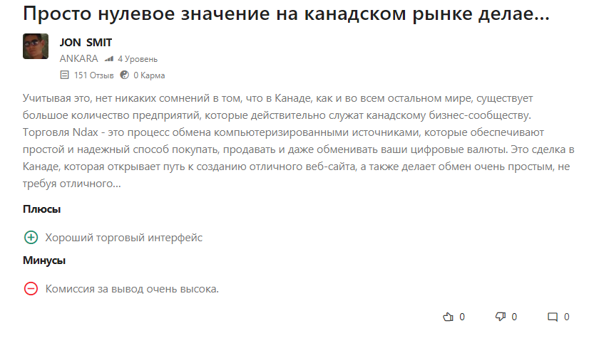 Сайт ndax io и зеркало ndaxexchange com получили смешанные отзывы о своей работе. В первую очередь они связаны с тем, что сервис ориентирован исключительно на граждан Канады. Еще пользователи жалуются на небольшое количество доступных для торговли активов. Другие – отмечают высокие комиссии и прочие неудобства: