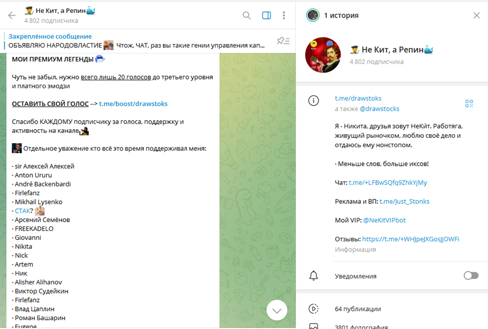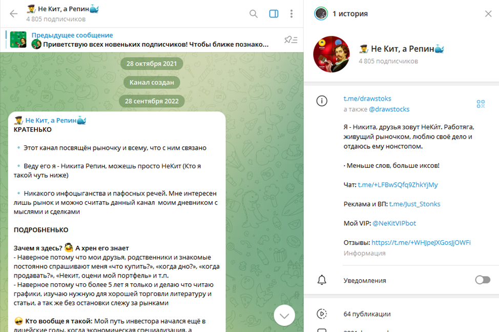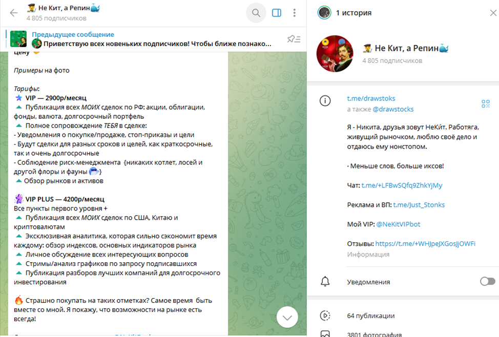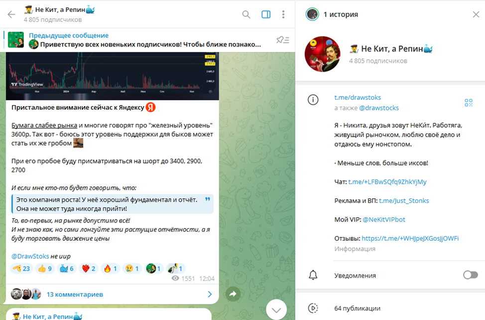 Разбор инвестиционного телеграм-канала «Не Кит, а Репин»: варианты заработка с трейдером NeKitRepin