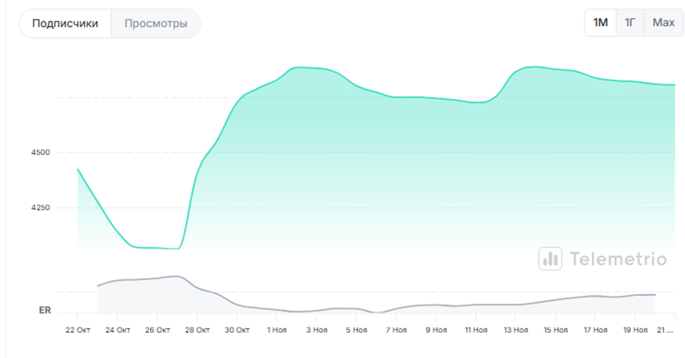 График статистики показывает, что Никита активно прибегает к услугам ботофермы. Но несмотря на этот факт, у ленты хороший и стабильный показатель просмотров, то есть имеется качественная аудитория, лояльная к проекту.