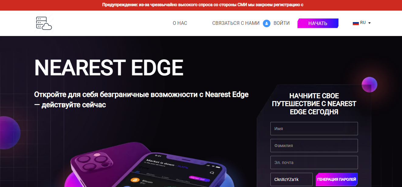 Nearest Edge – это инвестиционная платформа, подходящая для трейдеров с любым опытом. Пользователям обещают доступ к сайту, основанному на ИИ, и терминалу с комплексным функционалом.