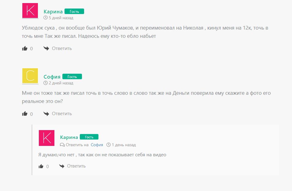 Учитывая все рассмотренные ранее и отзывы о криптовалюте Николая Беляева, мы хотим предупредить пользователей, что сотрудничество с мошенником грозит финансовыми проблемами. Если вы пострадали от уловок афериста, напишите свой отзыв в комментариях.