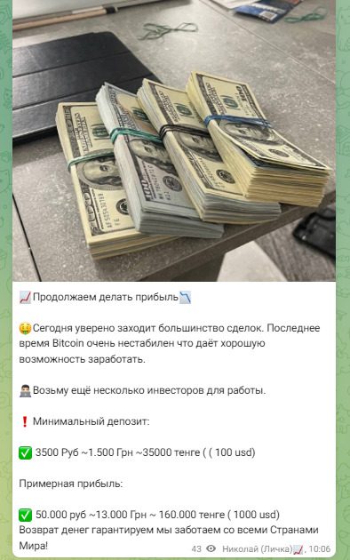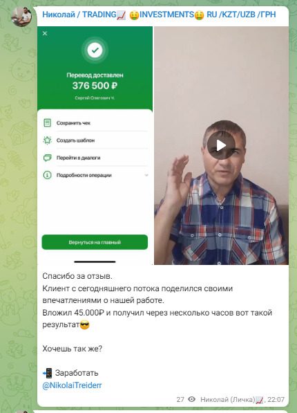 Телеграмм NikolaiTreiderr предлагает стандартные условия сотрудничества: