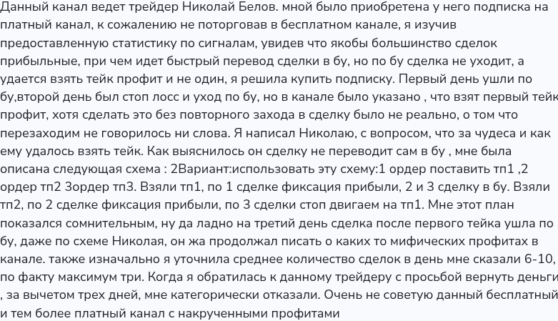 Отзывы о трейдере Николая Белове