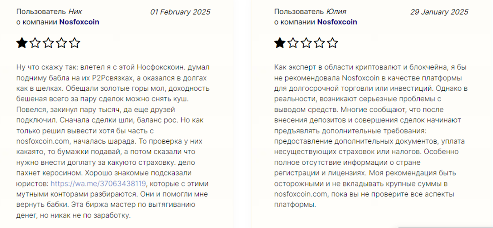 Негативные отзывы на Nosfox coin являются еще одним доказательством мошеннической сути проекта. Клиенты биржи рассказывают, как слили на ней деньги и как их обманули разработчики проекта.