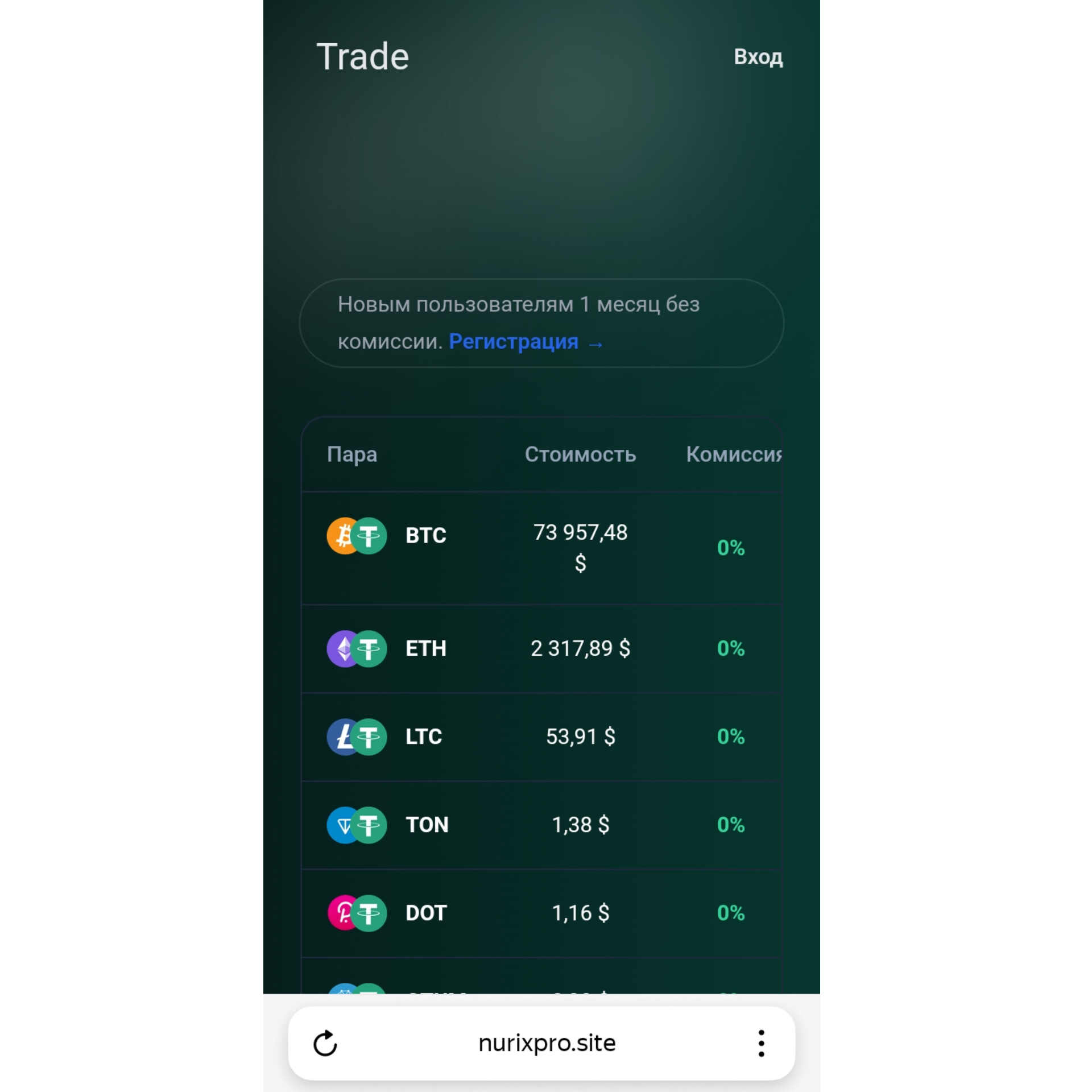 Nurixpro site предлагает торговлю следующими парами:
