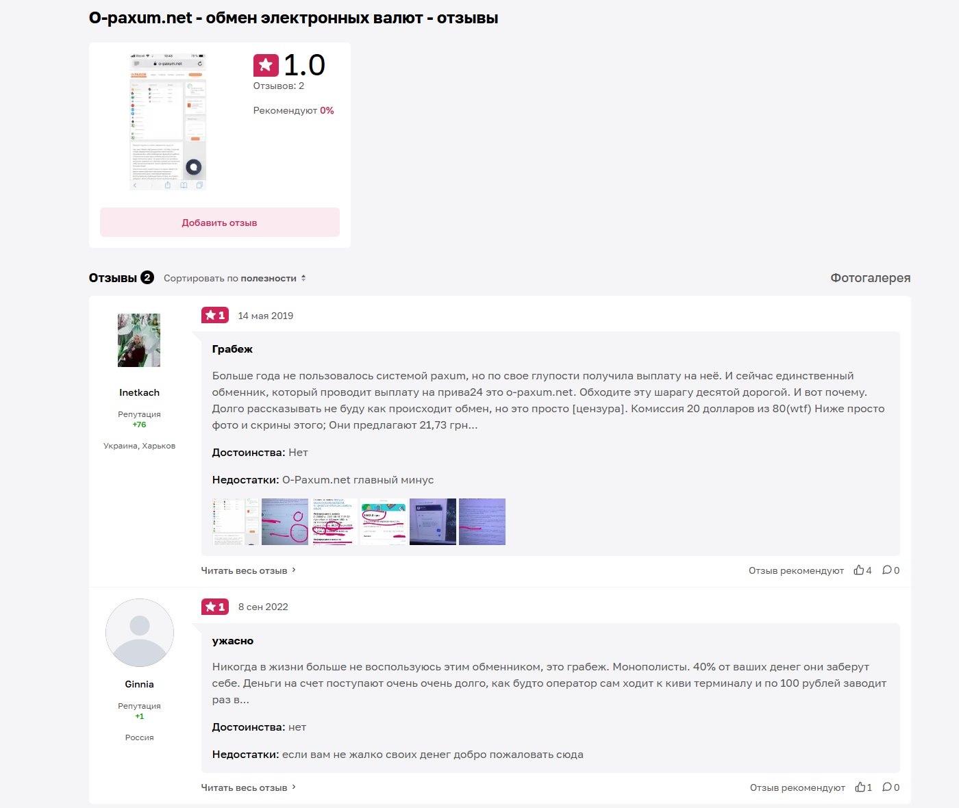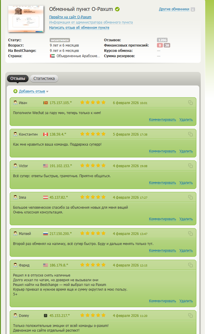 Отзывы об обменнике O Paxum net