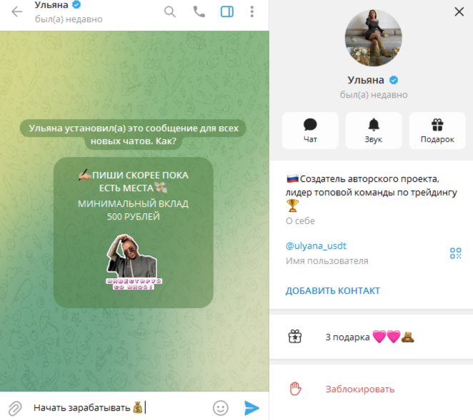 Обзор трейдера Ulyana Usdt, анализ деятельности и отзывы о телеграм-проекте «Официальный канал Доход без усилий»