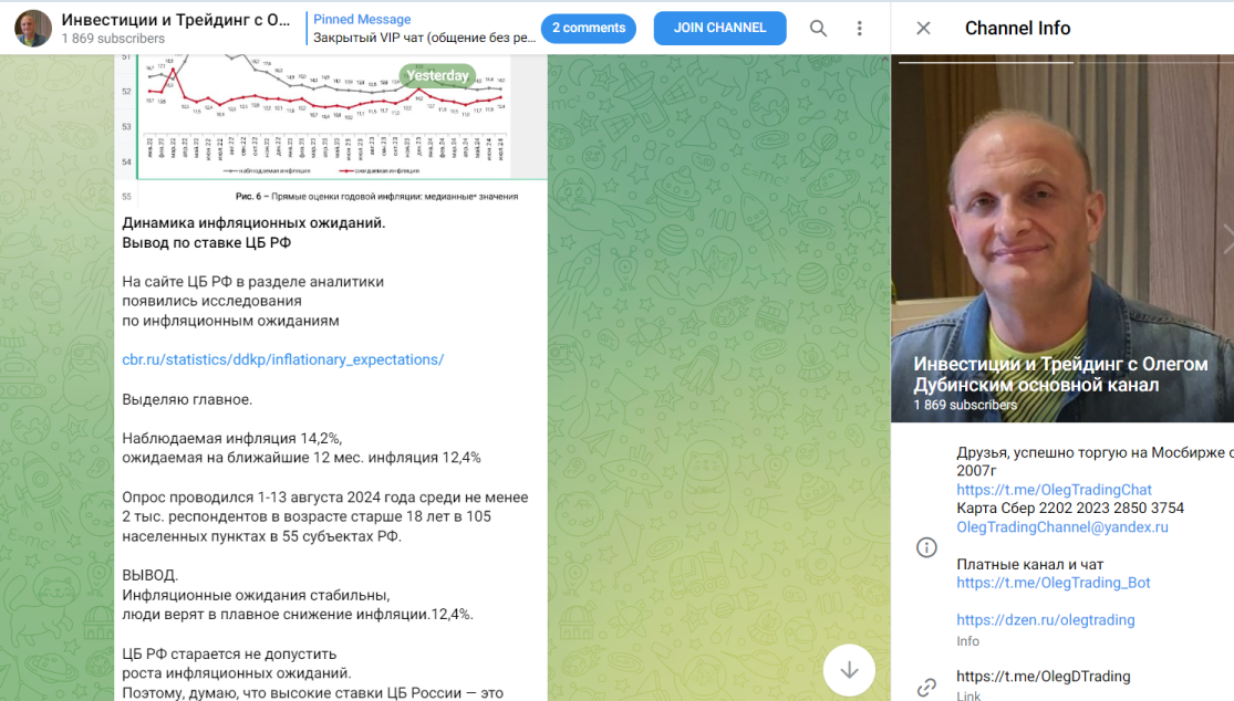 Олег Дубинский: отзывы о трейдере и обзор Телеграмма Инвестиции и Трейдинг с Олегом Дубинским