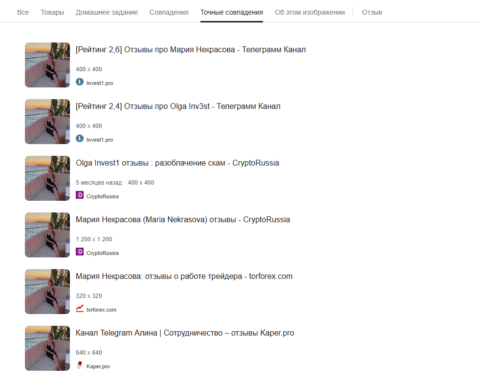После анализа личного профиля Ольги нам удалось выяснить, что все изображения взяты из интернета, а среди прочих проектов есть полностью идентичные копии, самые популярные из которых, это “Ольга Путь к мечте” и “Ольга Инвестиций в Криптовалюту”.