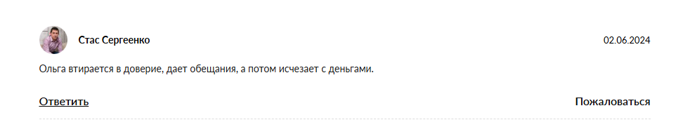 При этом на тематических платформах огромное количество негативных комментариев, где Invest Olya1 обвиняют в скаме по следующим причинам: