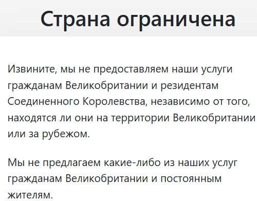 Более подробно узнать условия работы можно только после регистрации на сайте OMGFIN Exchange. Но сделать это не так просто. Сервис предупреждает, что граждане Великобритании не обслуживаются. Аналогичные сообщения появляются при попытке зайти из Германии и России.