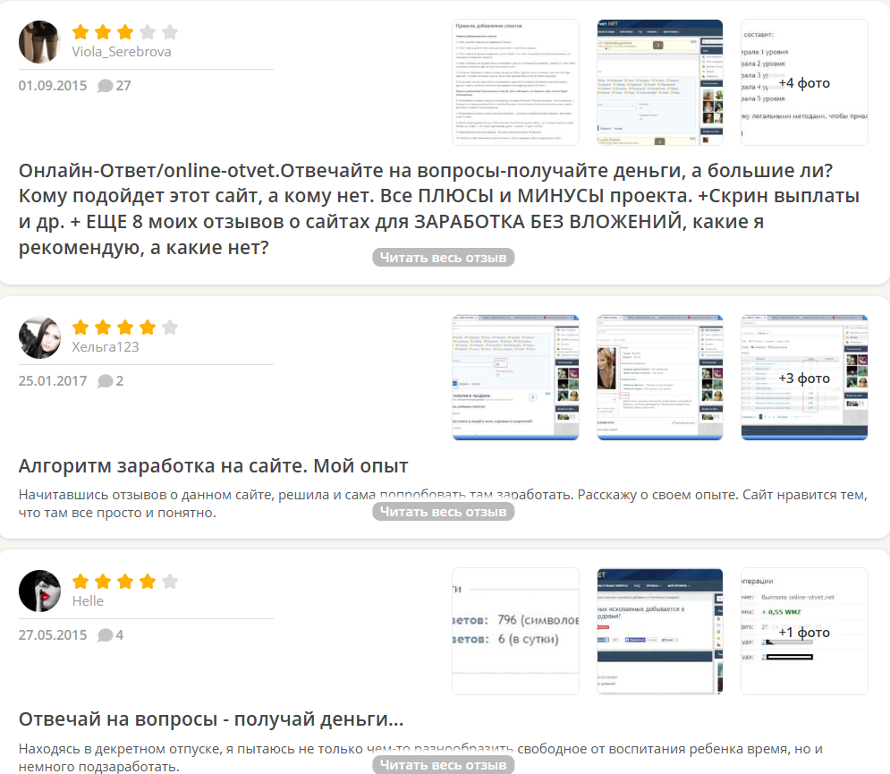 В сети пользователи обычно оставляли положительные отзывы, в которых писали, что проект действительно выплачивает деньги, никаких вложений для этого не требовалось, но заработать много здесь не удавалось. Подобные сообщения выложены в еще более раннее время, например, в 2015 или 2017 годах, а свежих отзывов об «Онлайн Ответ» нет.