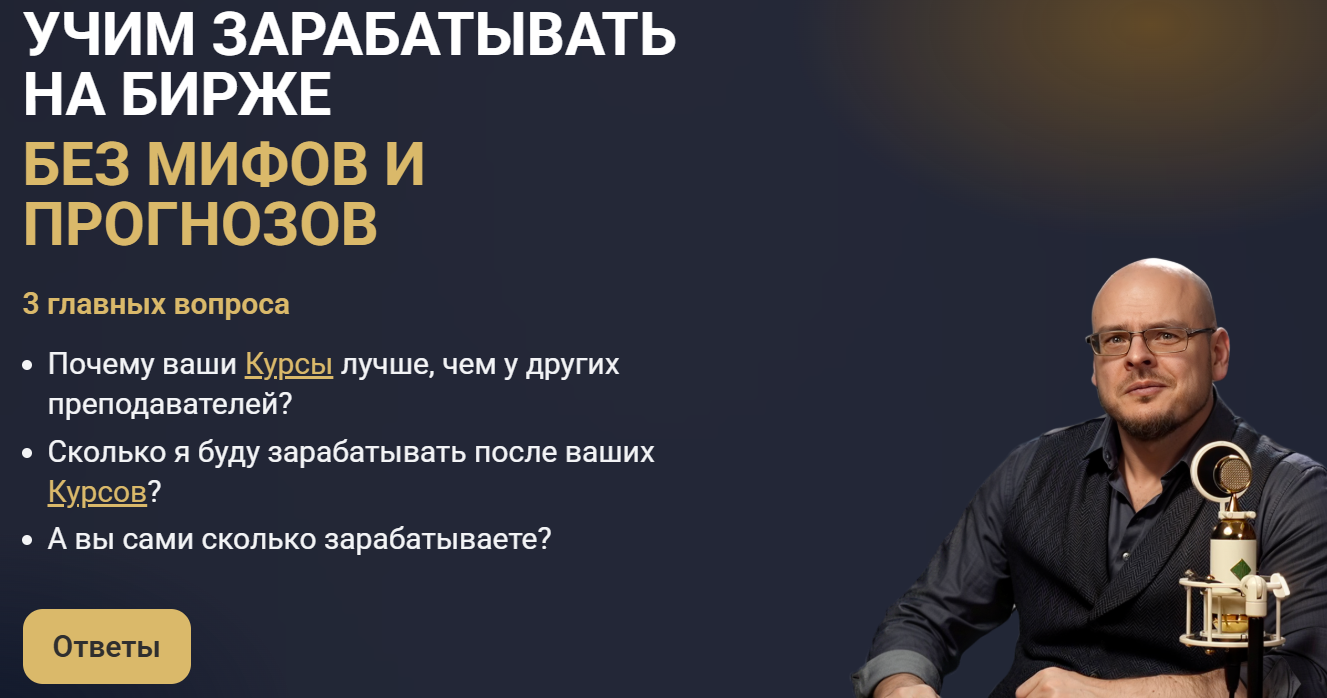 На курсе Опционы и Фьючерсы Илья Коровин обещает научить клиента делать прибыль на американском рынке ценных бумаг. Он рассчитан на трейдеров с базовыми знаниями и продвигается как возможность улучшить навыки торговли.