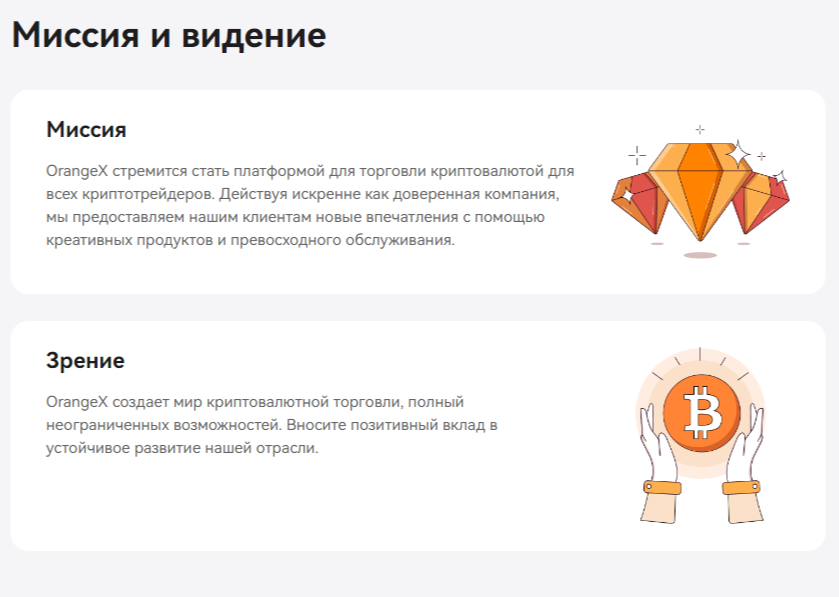 Также авторы заявляют, что их сервис orangex com гарантирует хранение активов трейдеров в резервах и обещают публиковать отчеты. Но таких документов на официальном сайте мы не увидели.