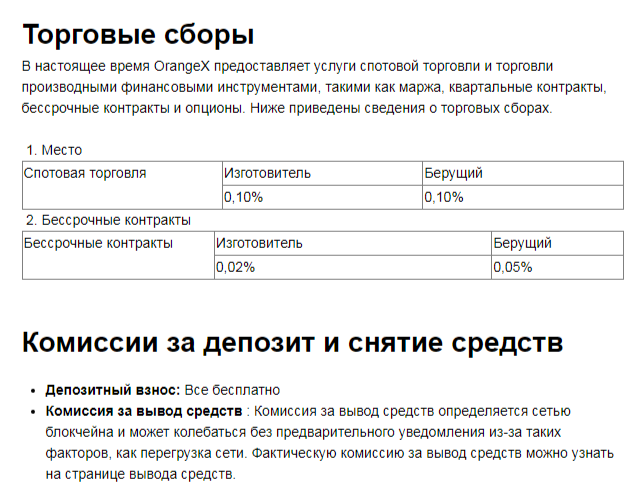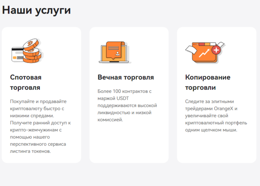 На площадке OrangeX Exchange предоставляют три вида услуг: