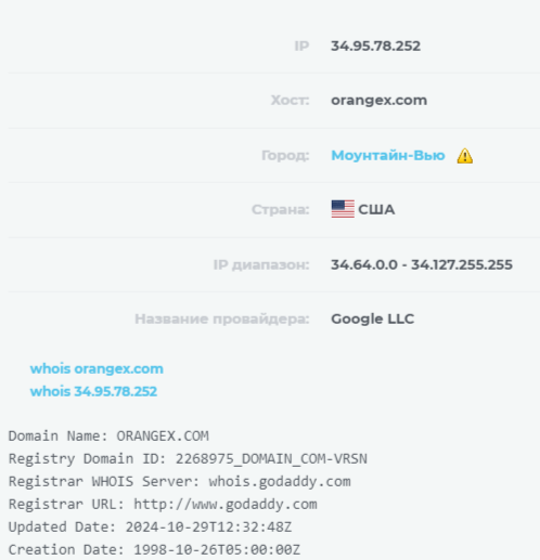 Мы проверили доменный адрес организации узнали, что он был зарегистрирован в 1998 году в США, а последнее обновление было в октябре 2024 года.