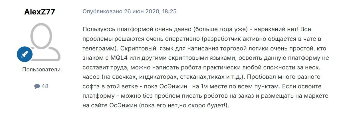 Отзывы о данном программе в сети положительные. Люди довольны работой сервиса, подтверждают, что он помогает в алгоритмической торговле, создавать роботов любой сложности.
