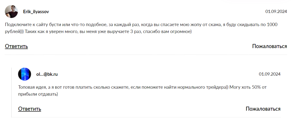 В разоблачении канала Отец Евген стоит обратить внимание на реальные отзывы подписчиков. Стоит отметить, что на сторонних сайтах информации немного, ведь инвестор дает бесплатную информацию и в почти не предоставляет платных услуг. В тех комментариях, что встречаются, пользователи отмечают реальную пользу и возможность защититься от СКАМа.