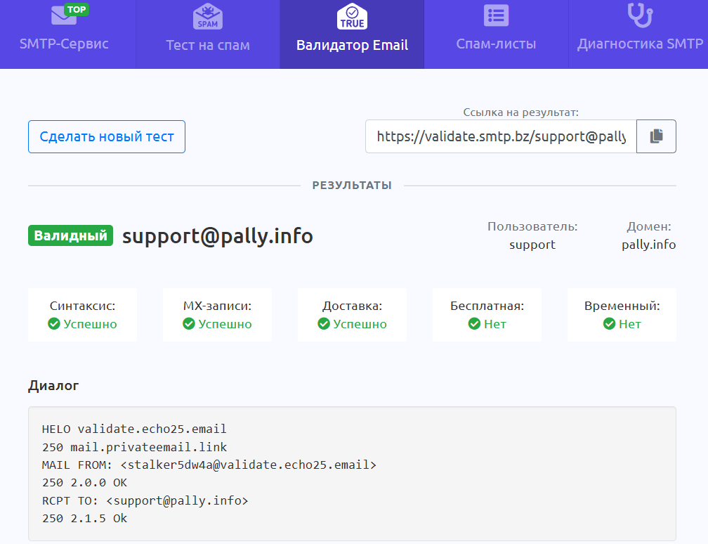Известен только адрес техподдержки и работающий на декабрь 2025 года телеграмм-бот с названием «Служба поддержки Pally Info». Проверка почтового ящика Support@Pally_Info показала, что он валидный, но операторы на сообщения не отвечают.Аккаунтов в социальных сетях не найдено. Скорее всего авторы проекта не продвигают себя через современные мессенджеры и соцсети.