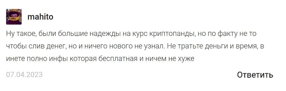 Услуги, предлагаемые этим трейдером, являются незаконными. Он торгует информационным сливом курса и обещает нереальную прибыль. Оплачивать его курс нельзя, скорее всего это какой-нибудь популярный бесплатный видеоурок, выдаваемый за уникальный материал.