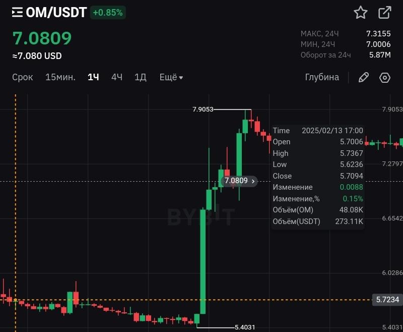 Например, он предлагал купить OM по 5,7 долларов и продать за 6,5 долларов. В итоге, по информации с биржи Bybit, цена за несколько часов выросла до 7,90 долларов.