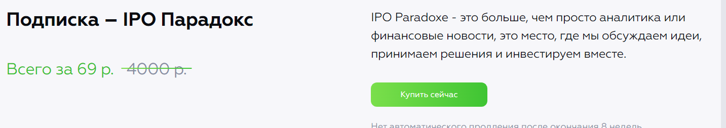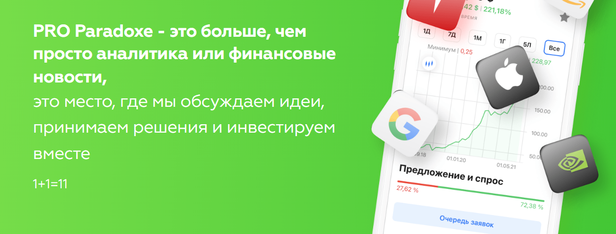 Paradoxe – это инвестиционное сообщество, созданное трейдером Александром Длуцких. Он предоставляет своим участникам аналитику, идеи для инвестиций и обучение по различным направлениям. Трейдер утверждает, что его основная цель — помогать инвесторам находить перспективные компании. В своем инвест-клубе он публикует IPO и долгосрочные инвестиционные стратегии.