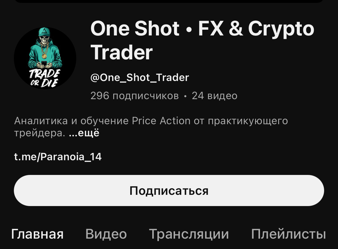 Второй бесплатный медиа-ресурс — ютуб-канал One Shot | FX & Crypto Trader. Всего опубликовано 24 ролика. Подписано 296 человек. В получасовых видео трейдер делится платными на неделю: анализирует монеты и делает прогнозы. Записи появляются еженедельно и и собирают от 100 до 200 просмотров.