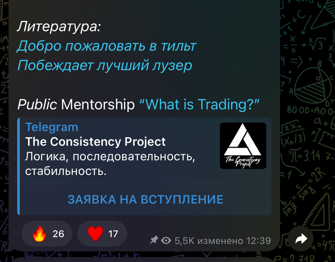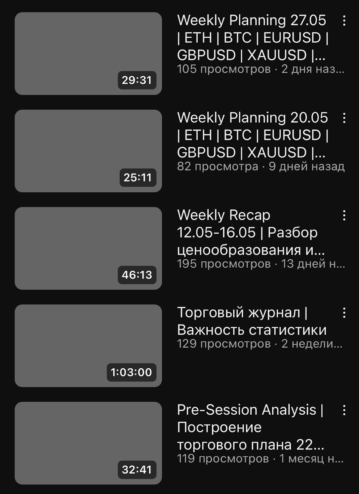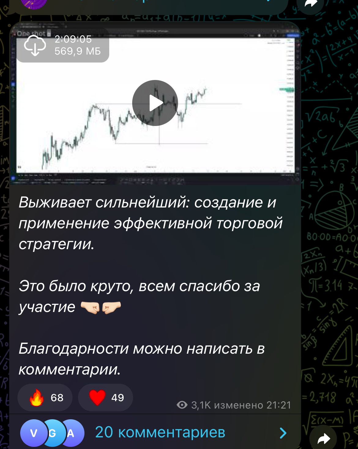 Периодически автор публикует записи прямых трансляций с разбором рынка. В постах он разбирает активы и демонстрирует графики, что создает впечатление о нем как о профессиональном трейдере.