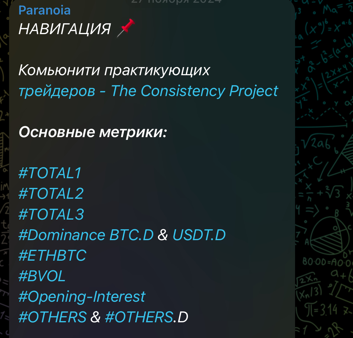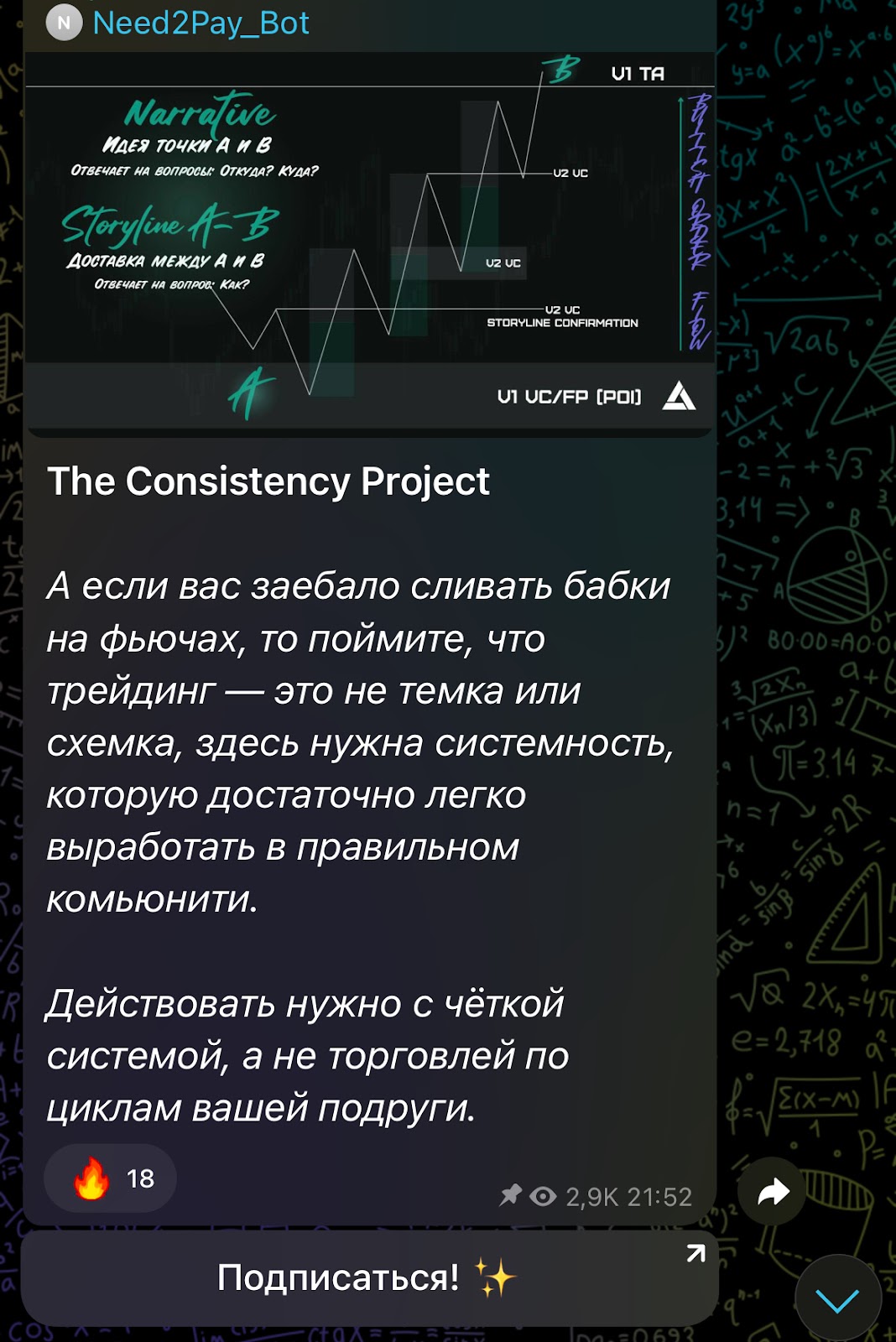 «Паранойя ТГ» — сообщество в Телеграм, посвященное криптотрейдингу. Автор проекта не раскрывает своего имени. Он публикует различные обучающие семинары и гайды по торговле. Также инвестор продает доступ в приватный клуб The Consistency Project, где дает закрытые советы и сигналы, а также делится статистикой.