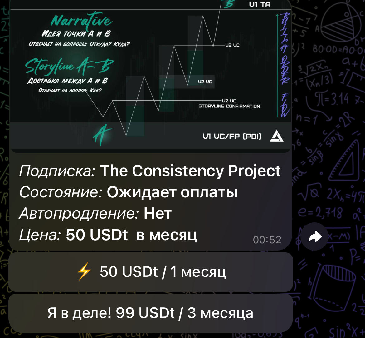 Основной базой дохода является закрытый клуб трейдеров. Автор обещает предоставить четкую систему, которая поможет зарабатывать на трейдинге. Более подробно о проекте не раскрывается. Можно приобрести доступ на месяцы и на три месяца. Цена — 50 USDT и 99 USDT соответственно.