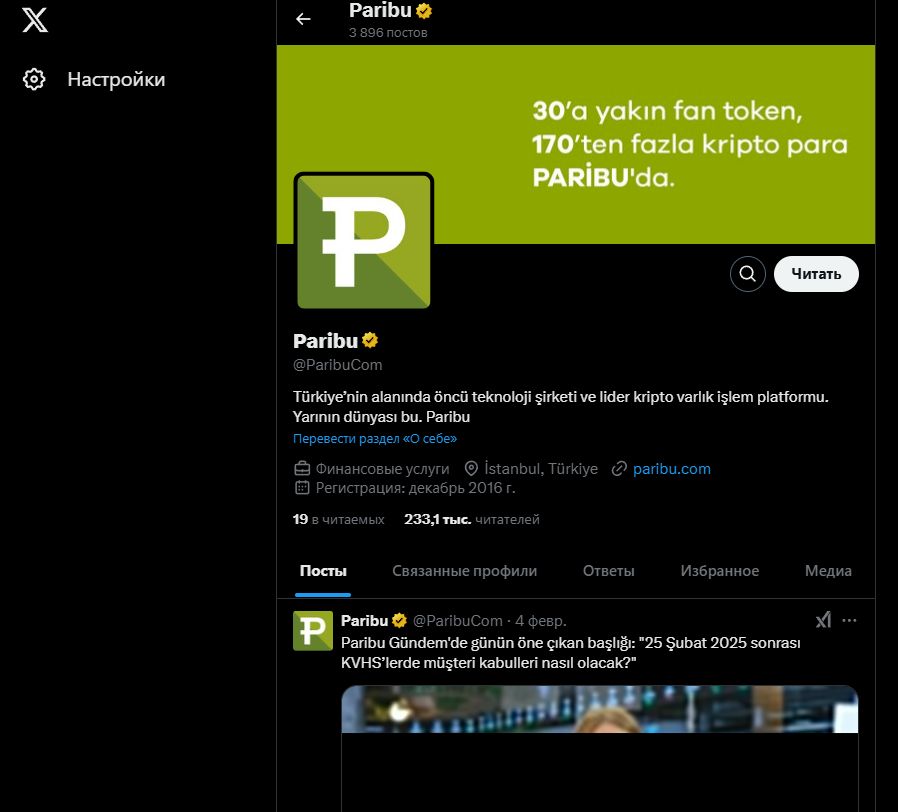 Официальный сайт биржи доступен по адресу paribucom. Веб-страница отличается приятным лаконичным дизайном, однако для международных пользователей ориентироваться на нем будет сложно, так как весь текст на турецком языке. Paribu поддерживает активность в социальных сетях.
