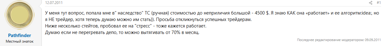 У юзера Gaugas отзыв не отрицательный, но он сомневается в уникальности торговой системы Pathfinder. Пользователь указывает на сходство разработки с другими предложениями на рынке.