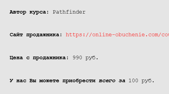 В Интернете минимум информации и отзывов о стоимости обучения, торговой системы Pathfinder. На одном из сайтов контент обещают продать за ₽100 при реальной стоимости в ₽990. Способы оплаты неизвестны, как и гарантии получения нужного ПО.