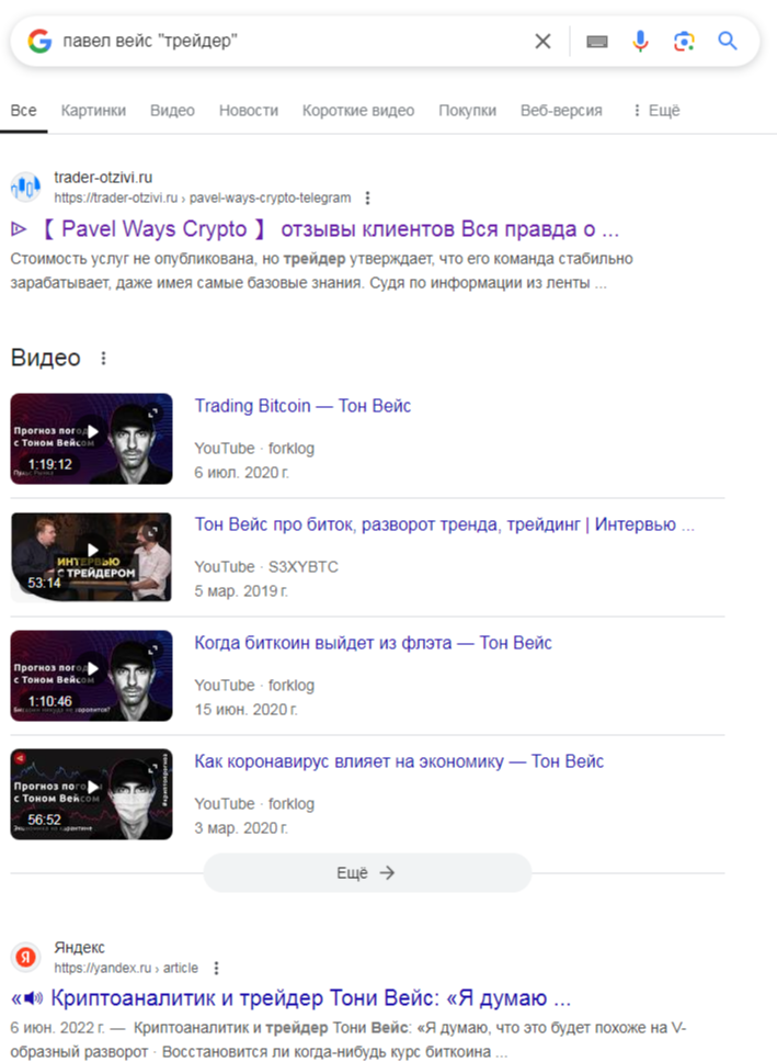 Как мы выяснили, реальной популярностью канал Pavel Ways | Crypto не пользуется. За 6 лет данный проект не смог получить репутацию и признание. Сам трейдер Павел Вейс также не является авторитетной и известной личностью, ведь и его имя в сети не упоминается.