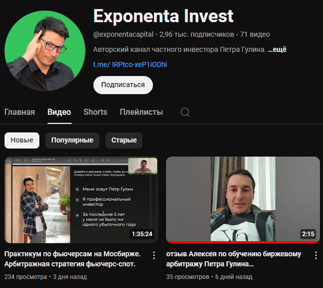 Содержание канала и правда очень поверхностное, а сделки, которые предлагает exponenta invest, не всегда работают. Такой контент явно не соответствует достижениям, которые приписывает себе сам Петр Гулин.