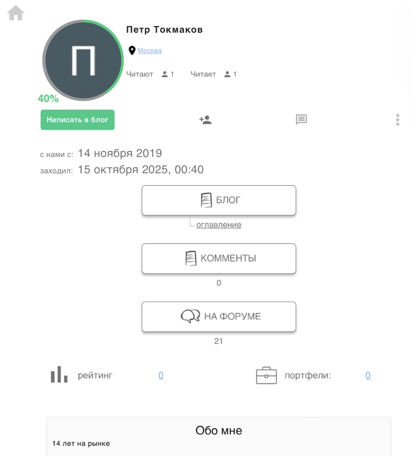 Ни одного отзыва, касающегося Токмакова, не опубликовано. Причин тому может быть множество — от скудного контента до полного прекращения трейдерской деятельности в открытом формате.